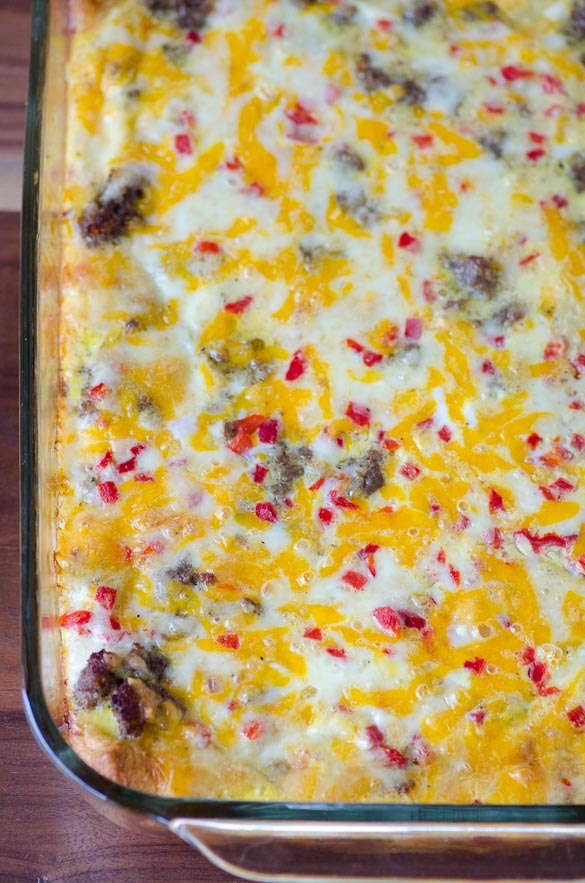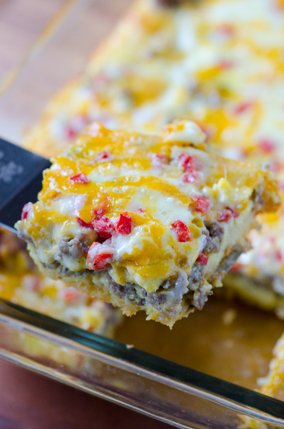 We loved this breakfast casserole and I know you will, too! If you don't like sausage, try using chopped cooked bacon instead because pimento cheese and bacon go together like PB&J. I would've used bacon if I had it on hand, but the breakfast sausage was really good!