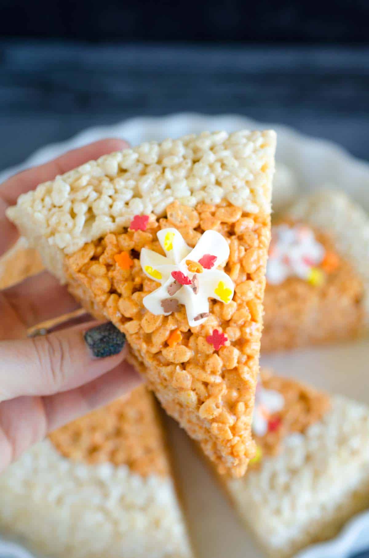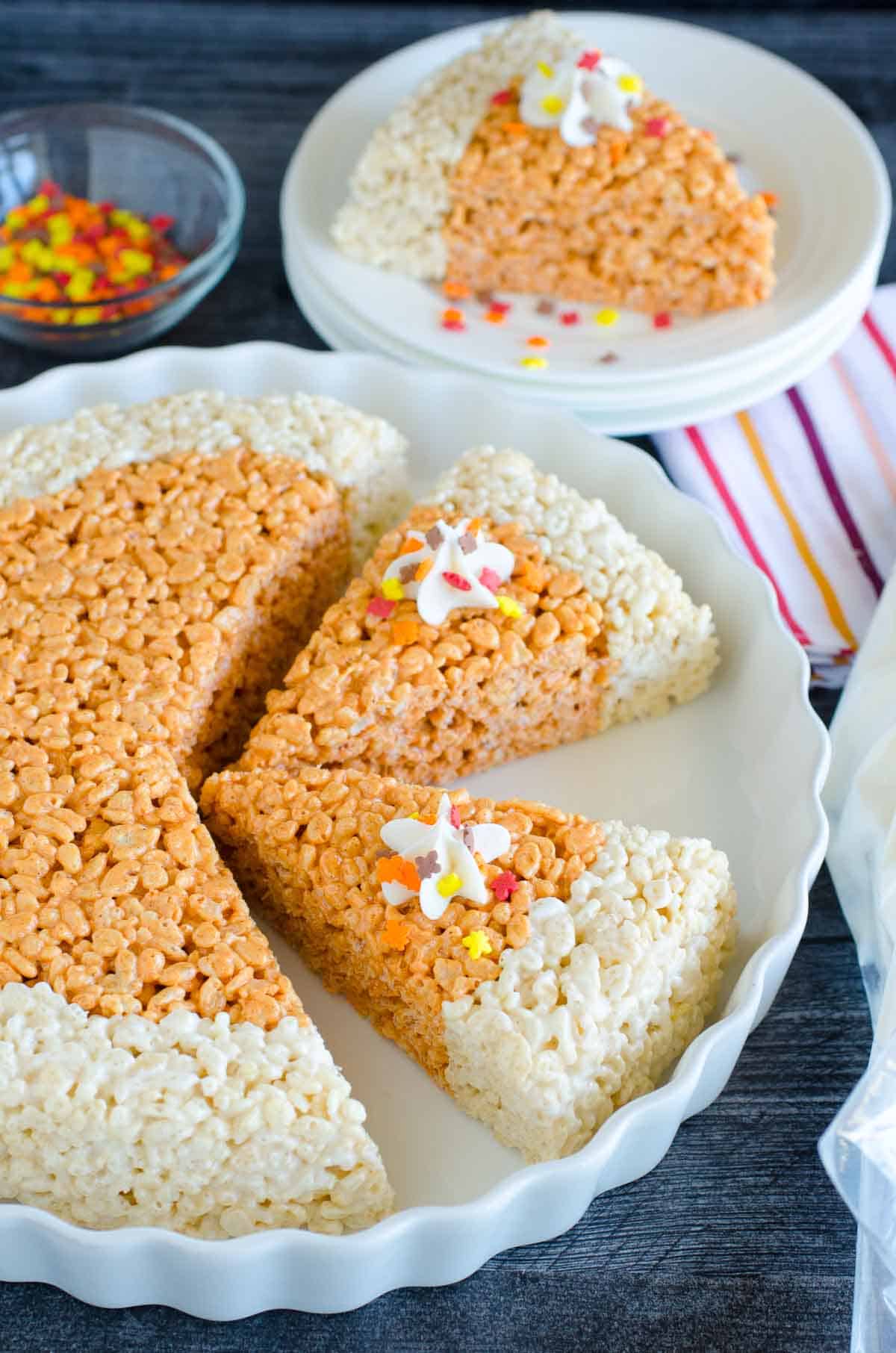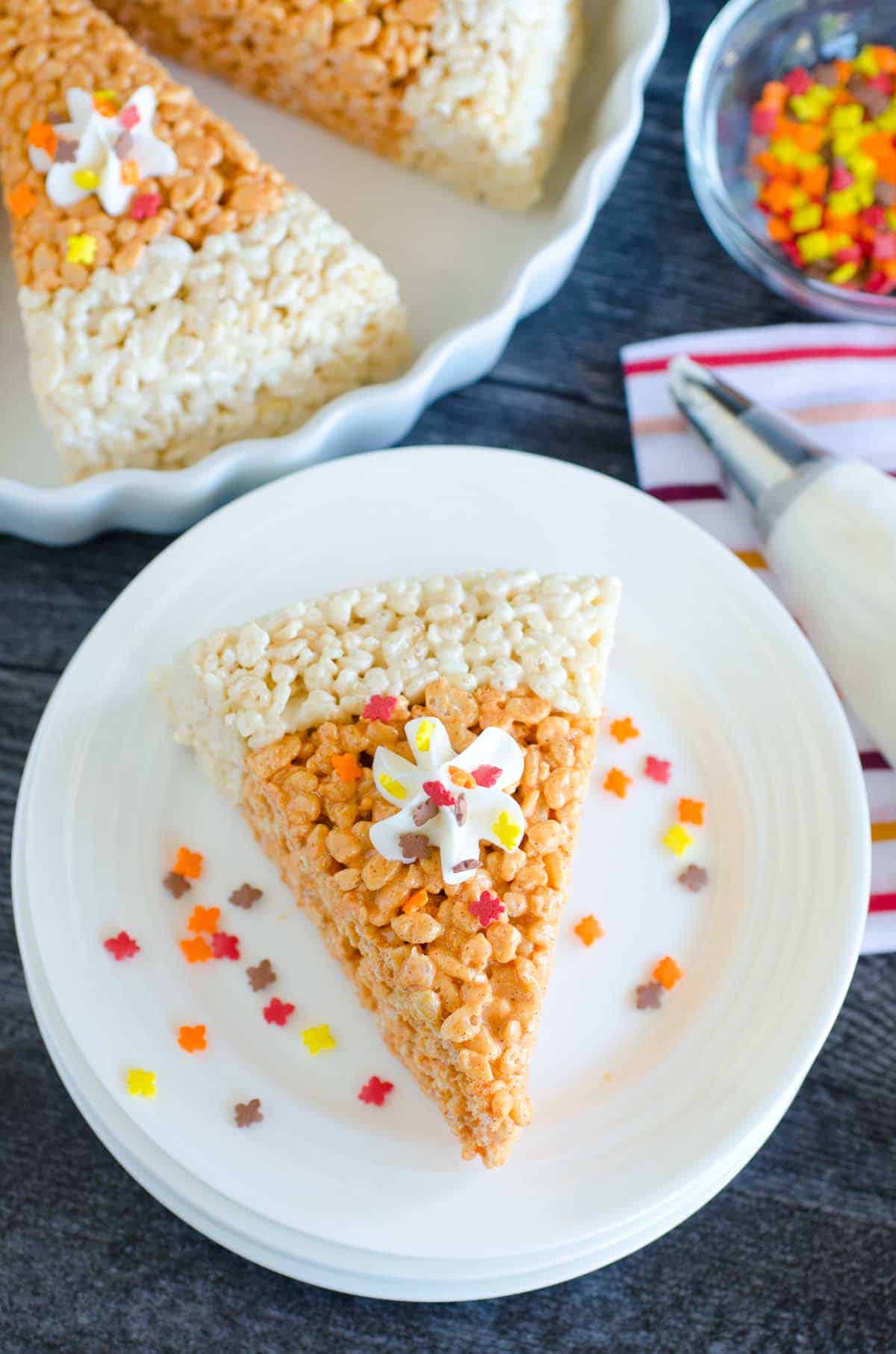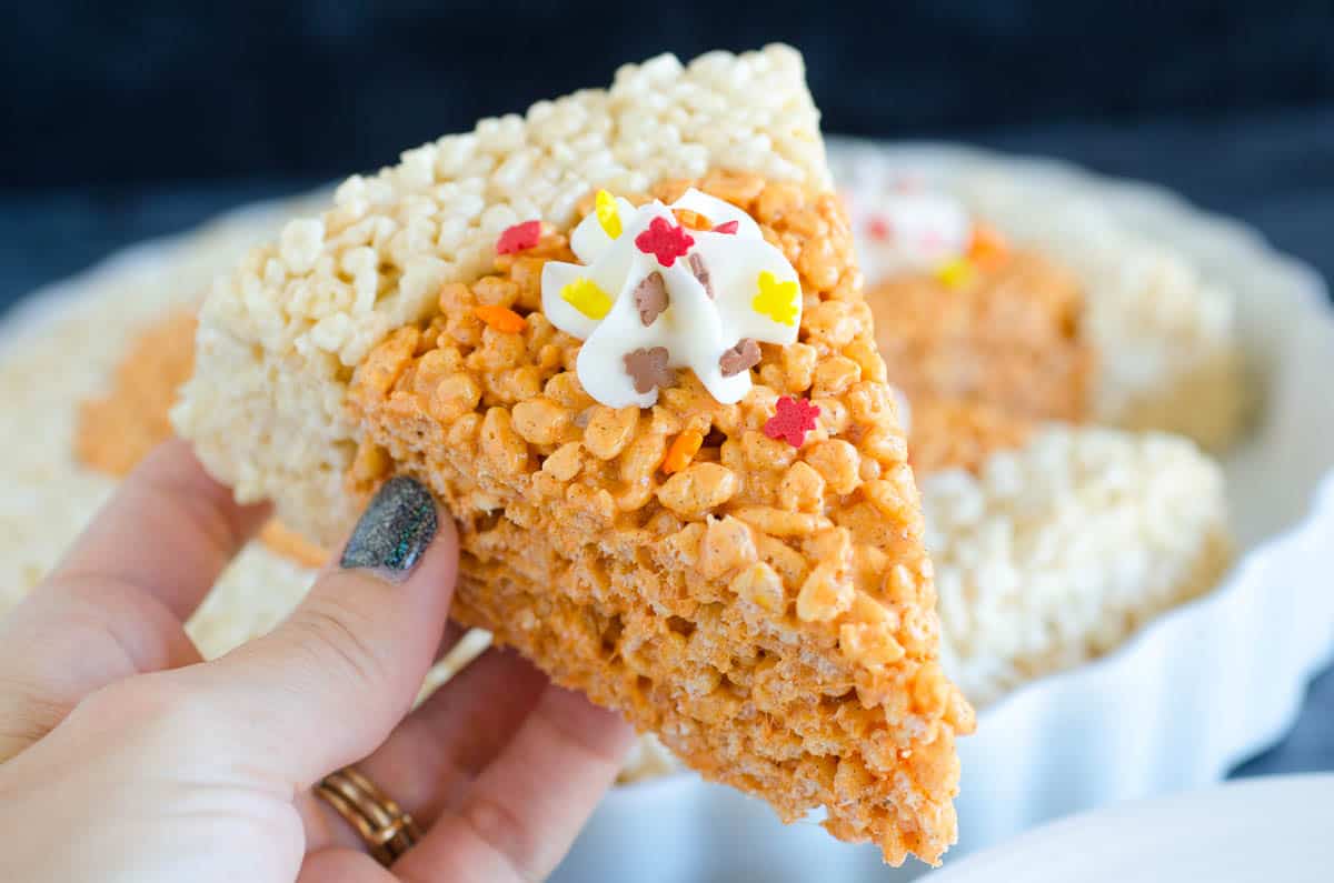 Try a slice of our Pumpkin Pie Rice Krispies Treats. An EASY and QUICK recipe and a kid-favorite Thanksgiving dessert!