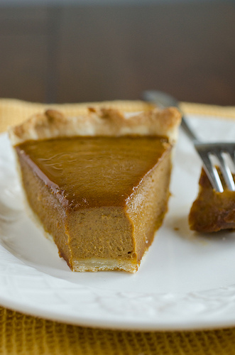 When I was was at the Foodbuzz Festival a couple of weekends ago, Ben decided to buy one of his favorite desserts at the store, pumpkin pie. There was still about three-quarters of the pie left when I arrived home, and he slowly made his way through it during the week. After the third or fourth day in a row that I witnessed him pulling that pie dish out of the fridge, I decided it was time for me to finally make him one from my very own oven.