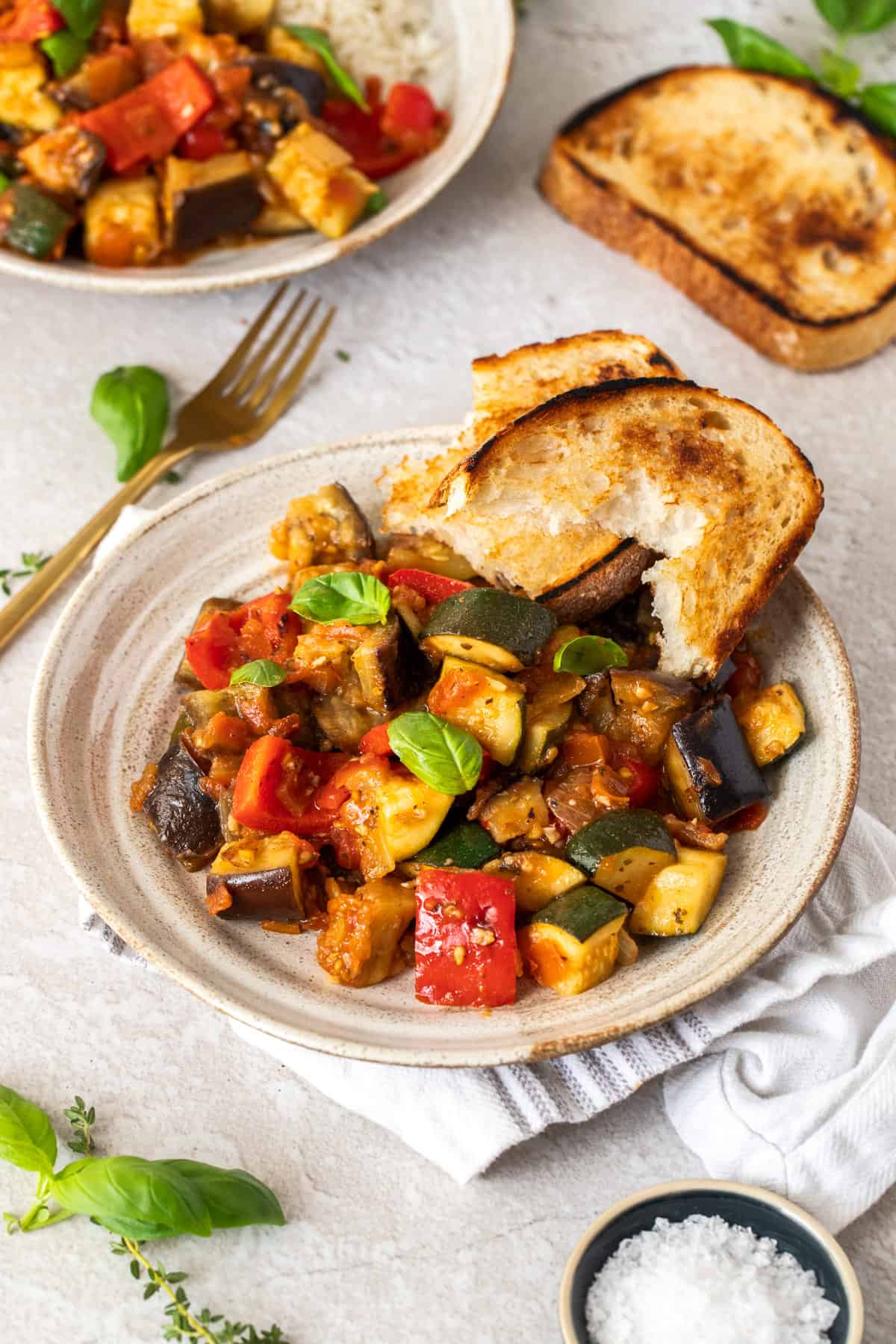 - Stew: Serve ratatouille alone in a bowl as a stew with a spoon. Or, top it over rice, noodles, or cooked eggs!