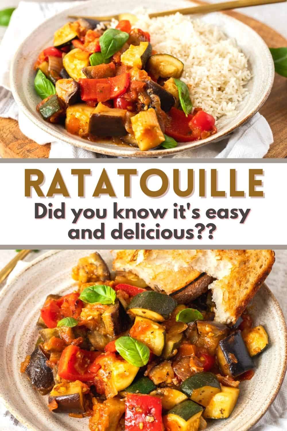 Ratatouille is a French stew composed of vegetables like eggplant, onion, peppers, zucchini and tomatoes. Serve on its own in bowls with crusty bread, or over rice or noodles.