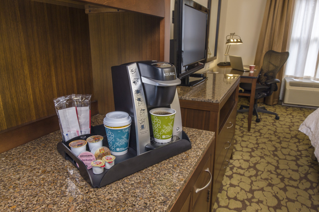 Keurig and Hilton Partnership - So you know me and my love for my Keurig machine, right? I recently learned that Hilton Garden Inn is now offering the Keurig K130 single cup brewers in their hotel rooms. Get out! I love love love this idea! There are four free K-Cup sample packs provided in each room, along with a large selection available for purchase. We travel a lot, and I have never used the in-room coffee maker because it's a hassle. But, you better believe I would use a Keurig brewer in the room and save on purchasing my coffee.