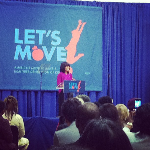 Anyway, Michelle Obama was in our town during her quick 2-day national tour to celebrate the third year anniversary of the Let's Move! campaign. Without going into too many details...yet (coming another day) I will give you the short of the story. The White House contacted my blogging network, BlogHer.com, and asked if they had a blogger in the area who could interview the First Lady during her visit, regarding the Let's Move initiative. To my delight, BlogHer called ME and the next day I was sitting face to face with the First Lady having a delightful conversation!