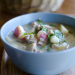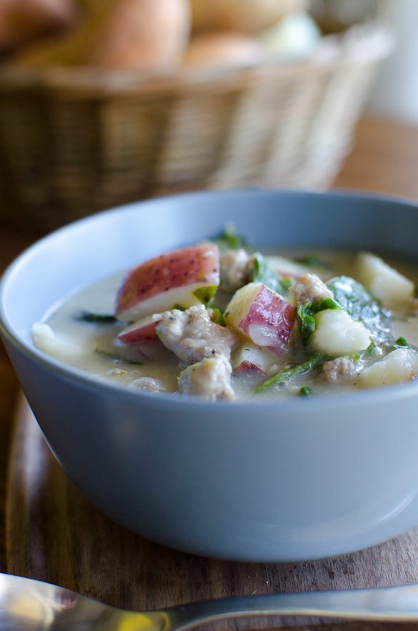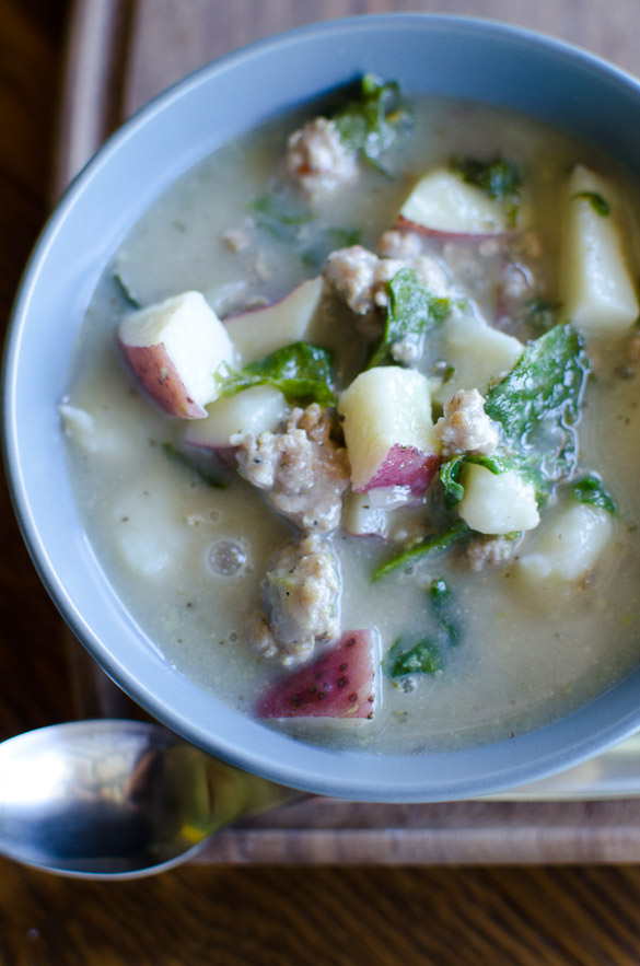 A simple and healthy potato soup with sausage and kale that is reminiscent of the familiar Zuppa Toscana at your favorite restaurant. This recipe can easily be Whole30 compliant and is full of flavor.