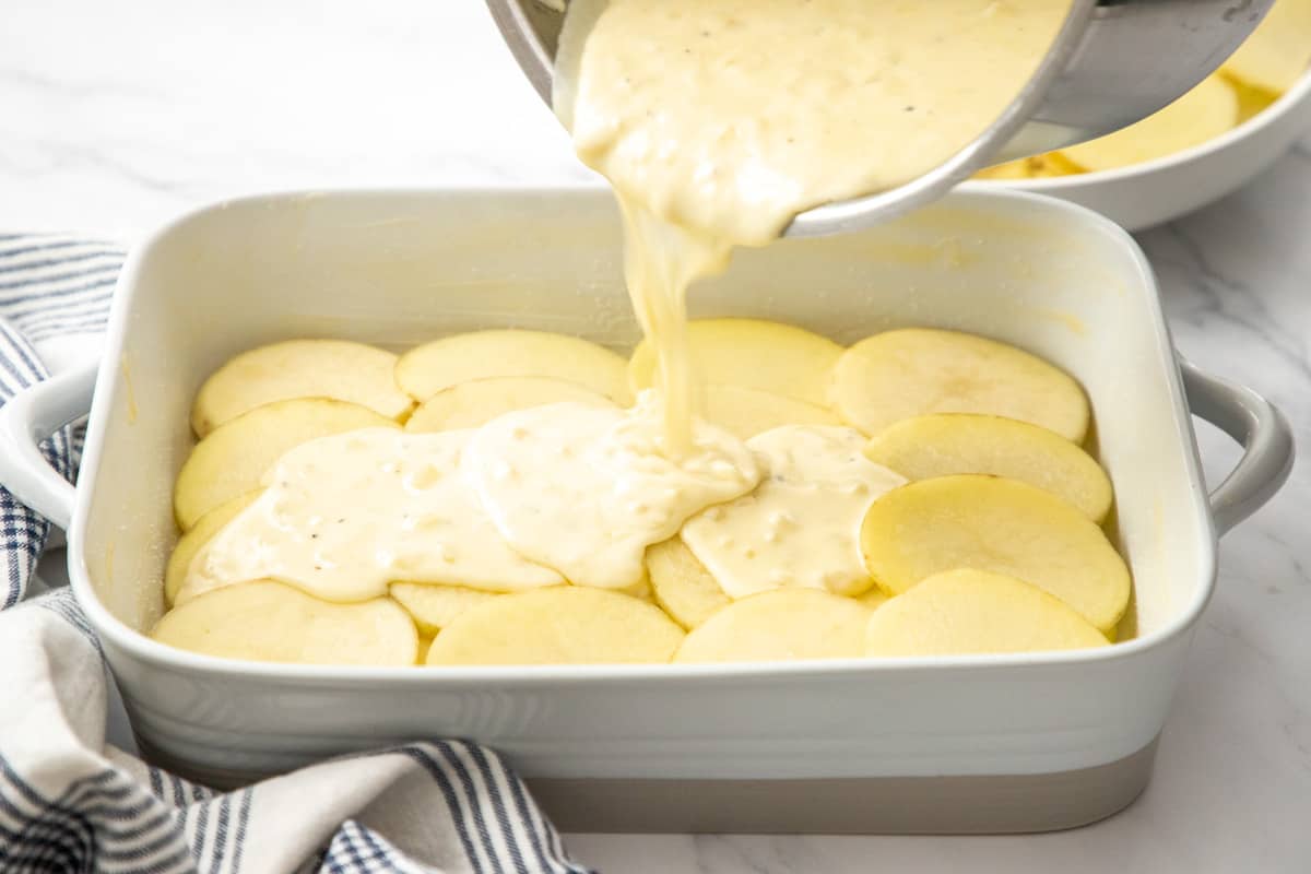 Scroll to the recipe card at the bottom of this post for the step-by-step on how to make scalloped potatoes. The general steps are as follows: