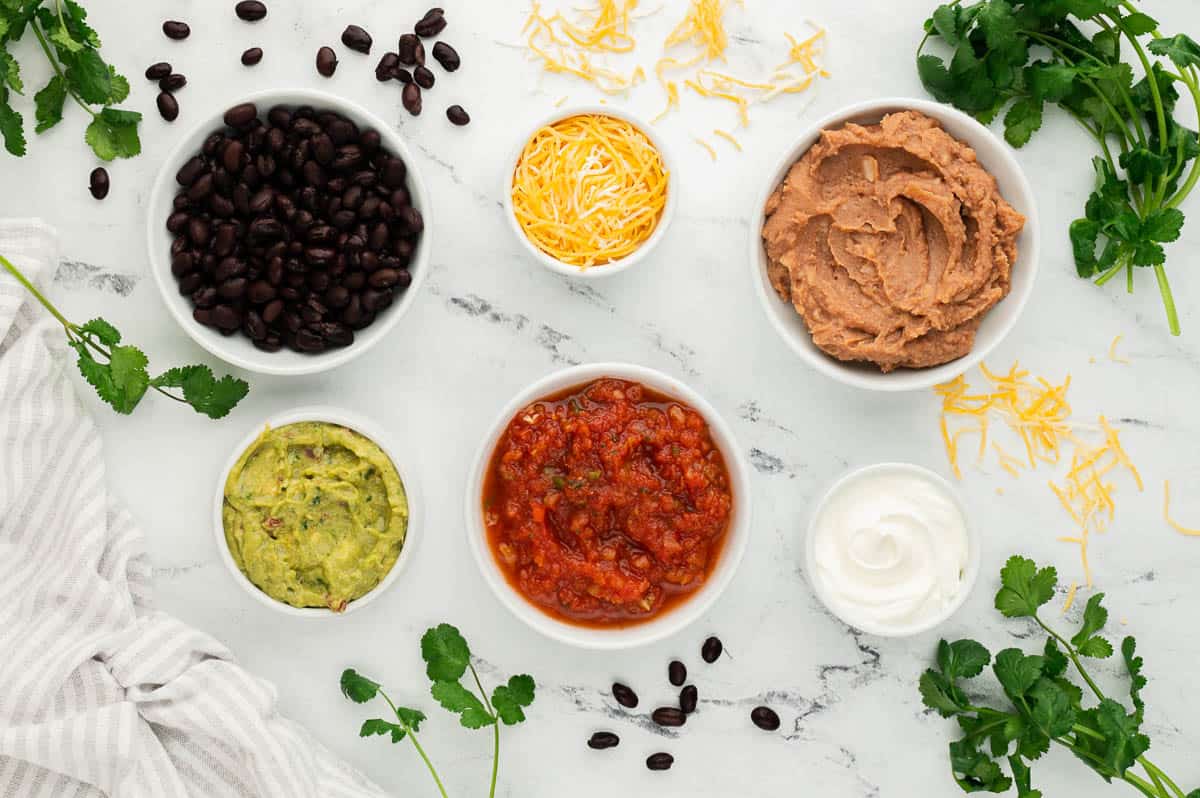 - Shredded cheese - This is another area you can go wild. Keep it simple with the classic sharp cheddar cheese or Mexican blend package of shredded cheese, or use whatever other favorites you like. I've even poured on some hot queso blanco for an extra kick!