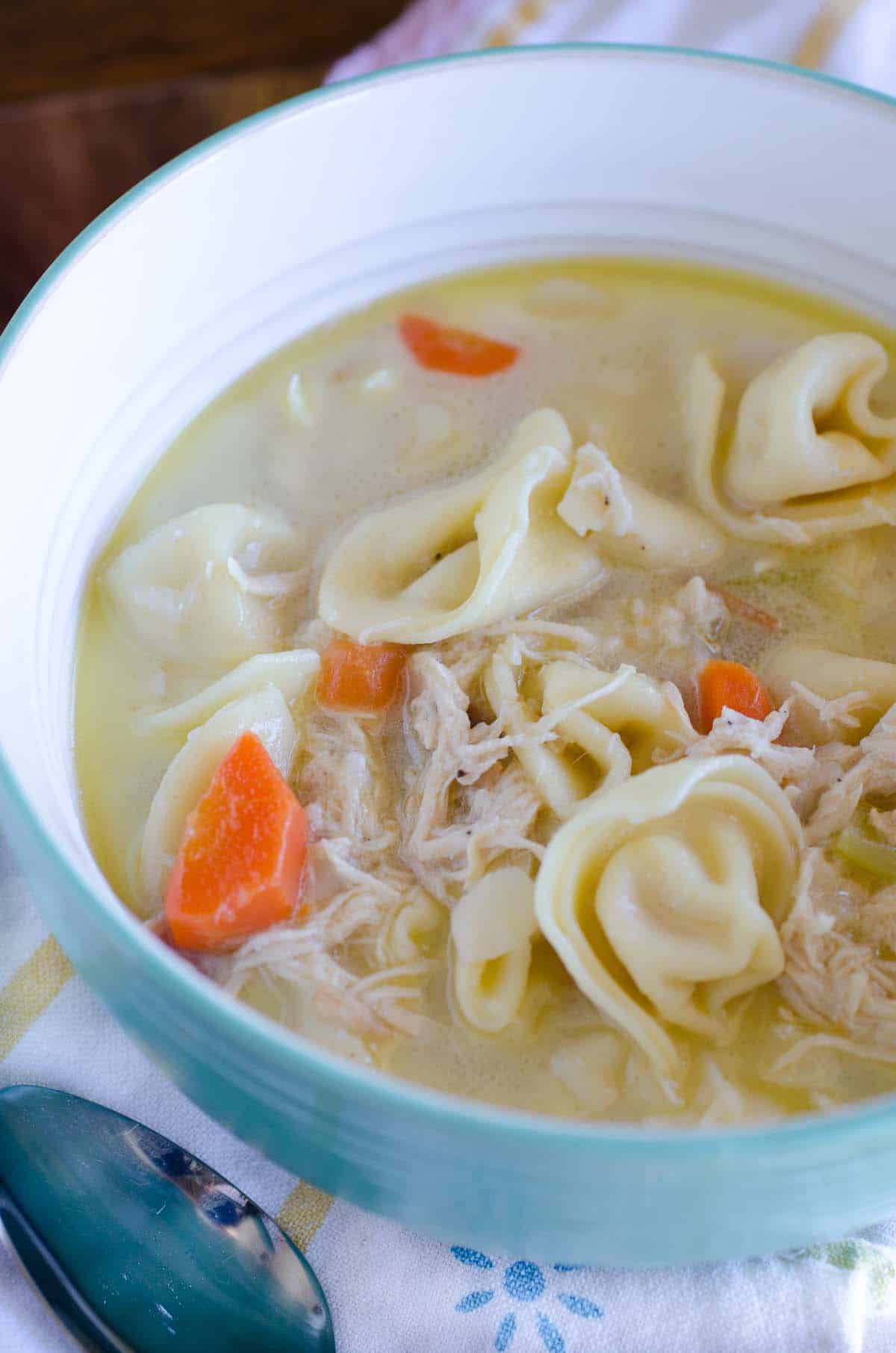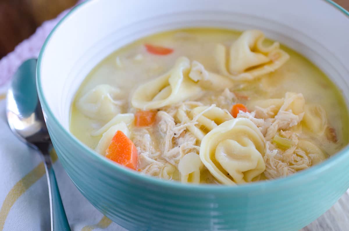 Chicken and cheese tortellini soup is an easy and flavorful dinner to quickly get on the table. It's a simple dinner idea for a family favorite meal!