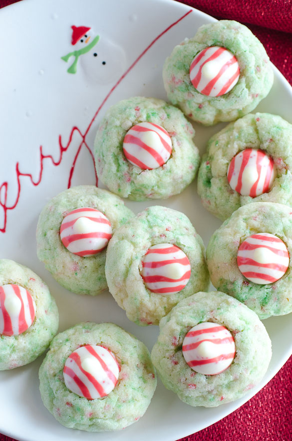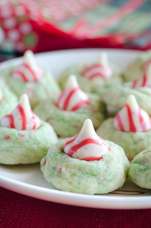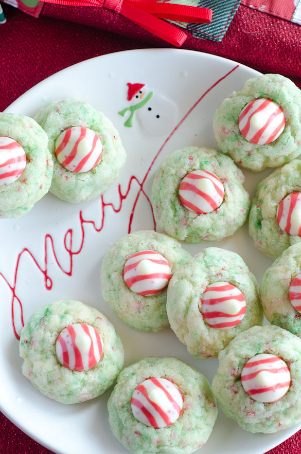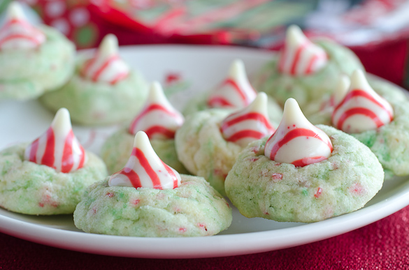 It's true that the first thing I always think about when seeing Hershey's Kisses are blossom cookies, especially Peanut Butter Blossoms. Well, how about Hershey Kiss cookies with no peanut butter? Better yet, how about Hershey Kiss cookies with sugar cookies? Let's go one more "better yet" and say Hershey Kiss cookies with PEPPERMINT sugar cookies!