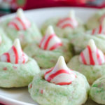 Sugar Cookie Candy Cane Blossoms are peppermint sugar cookies topped with Hershey's Candy Cane Kisses. They are a spin-off of the traditional Peanut Butter Kiss Blossoms. You will love these Candy Cane Blossom cookies because they are easy to make, delicious to eat, and perfect for your Christmas cookie swap!