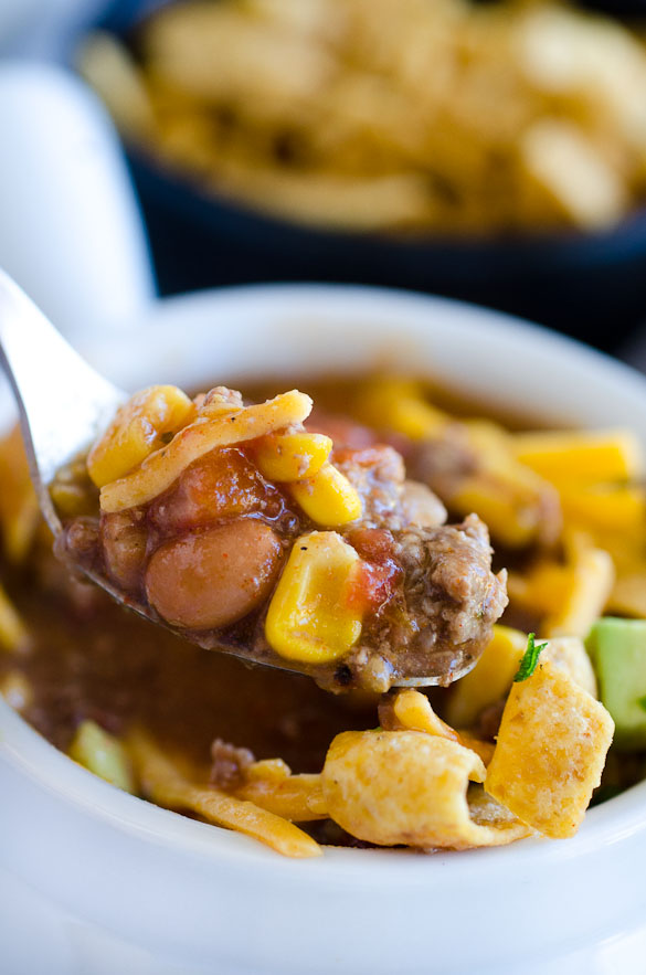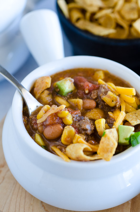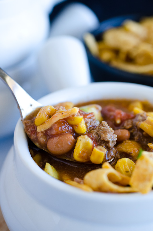 - To serve, place a few corn chips in each bowl and ladle soup over them. Allow everyone to choose their optional toppings.