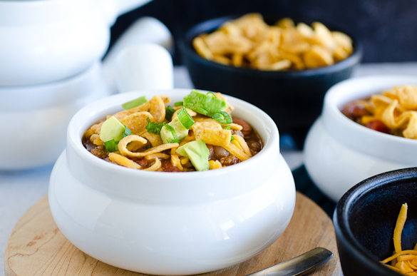 This soup is great on its own, but it definitely is stepped up a bit when you top it with our favorite taco fixins. Serve it with sliced or diced avocados, a dollop of sour cream, shredded cheese, and chopped green onions.