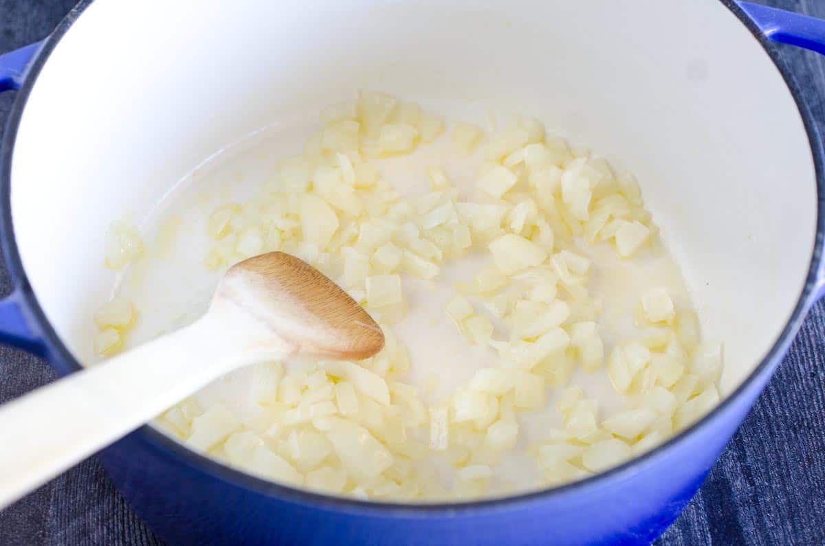 - Heat oil in large pot or Dutch oven over medium heat. Cook onions until tender.