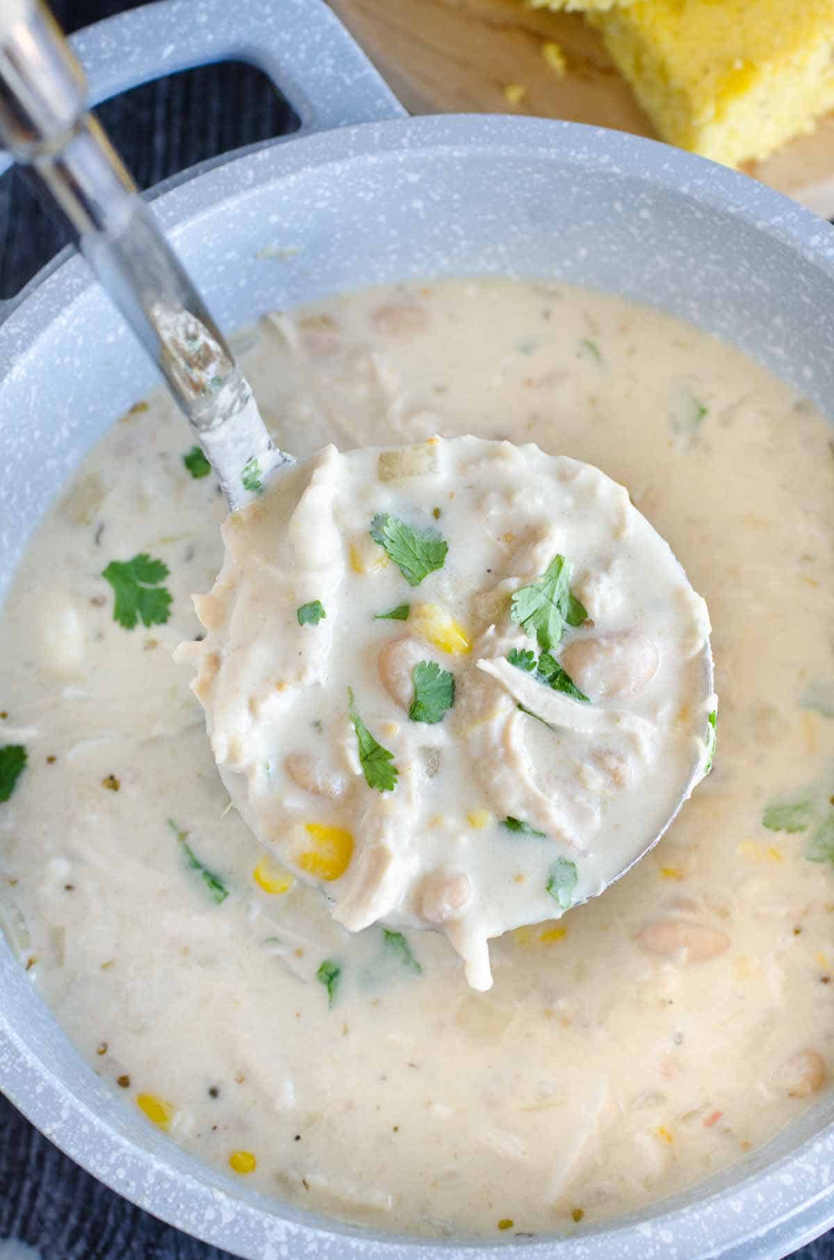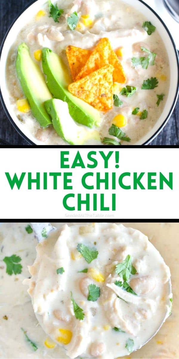 This white chicken chili is easy and creamy, made in just one pot on the stove top. A family favorite dinner recipe!