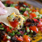 Baked Southwestern Chile Dip is a super easy dip that can be prepped up to 4 hours in advance. Throw in the oven for only 20 minutes before topping with fresh tomatoes and green onions.