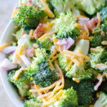 A fresh crisp broccoli salad tossed with a simple tangy homemade dressing. Broccoli salad is a quick salad everyone loves for any gathering, potluck, party, etc.